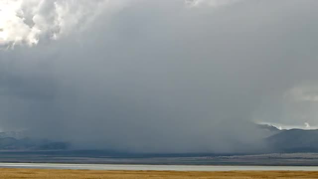 Lightning flashing through storm clouds moving over the landscape