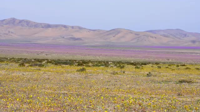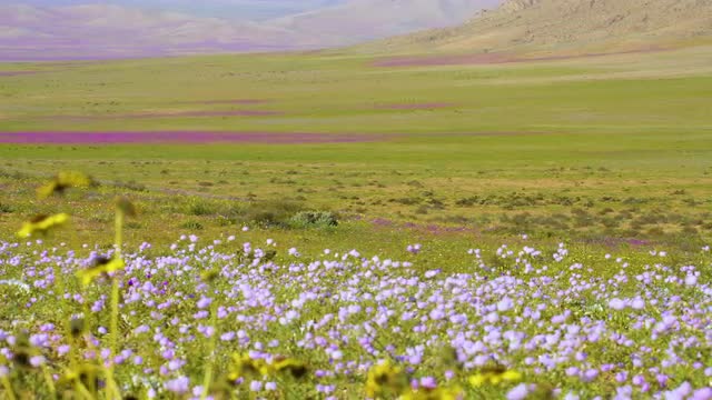 4x4 urban SUV touring through the Atacama Desert during one of its biggest blooms in the last 20 years