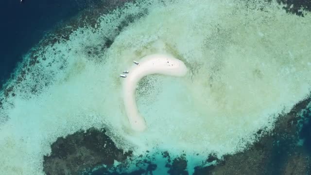 Aerial footage a small, sandy island in Indonesia. Shot in 4k.