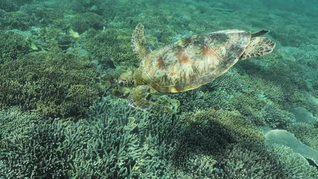 Turtle Snorkeling Girl Reef Underwater Slowmotion 4k
