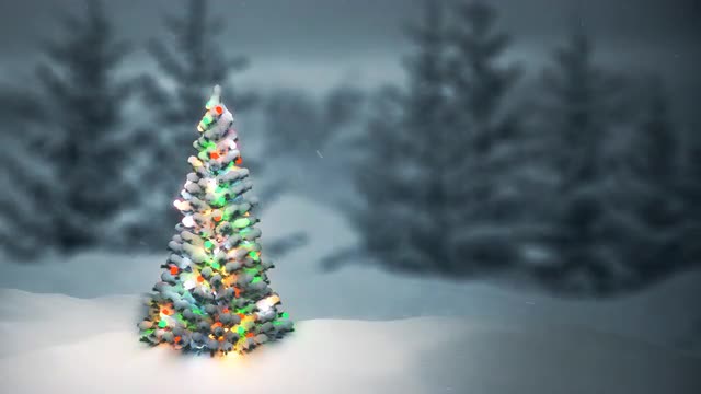 Cinemagraph of White House, Christmas tree at night, Marine One helicopter