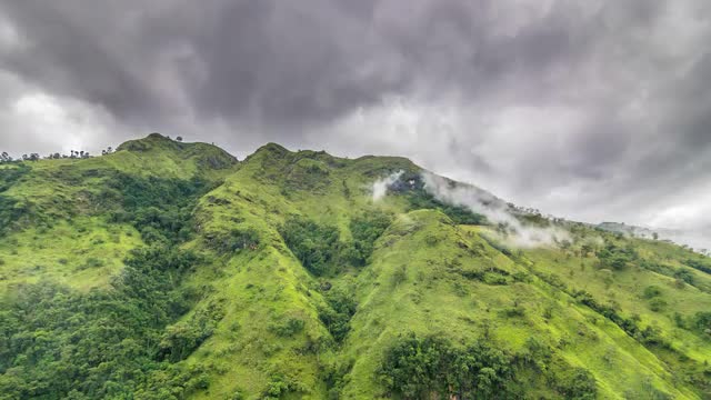 Tropical mountain after rain with fog under dark clouds time lapse
