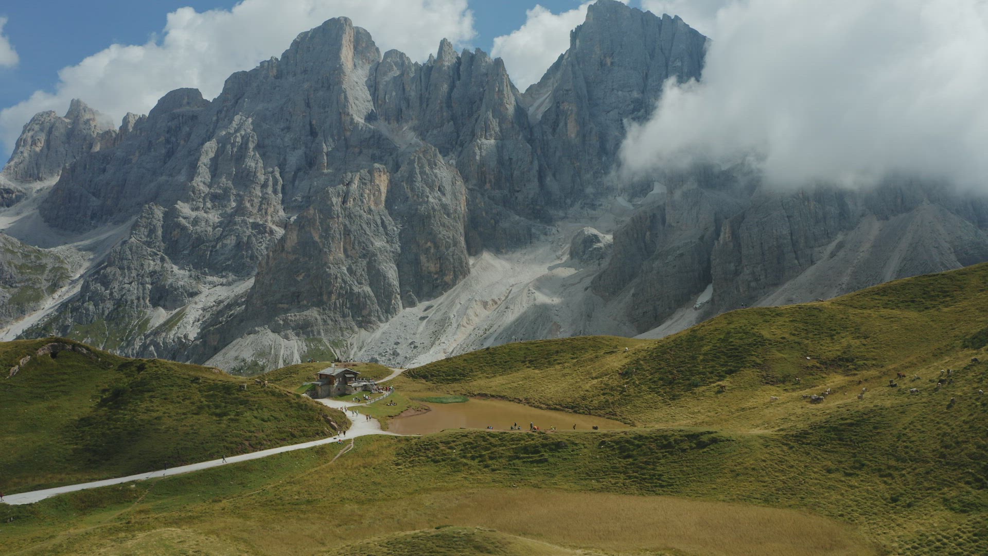 Beautiful Lago di Braies (Pragser Wildsee) in Evening Light with boats and people.