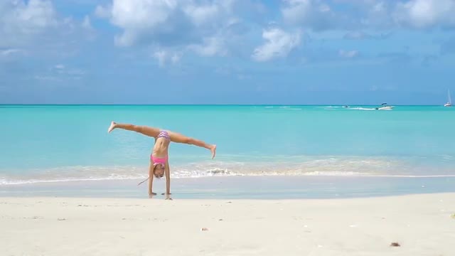 Adorable active little girl at beach during summer vacation