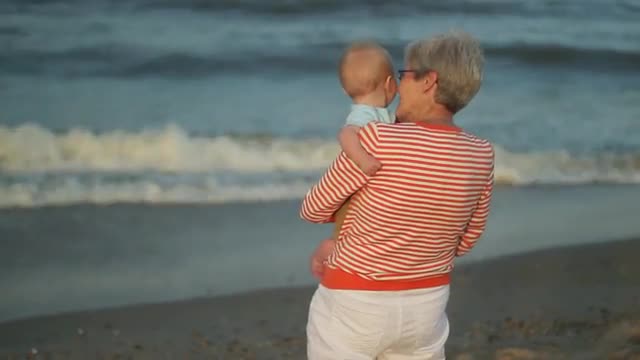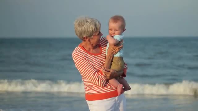 > Adorable little girl at beach having a lot of fun. SLOW MOTION