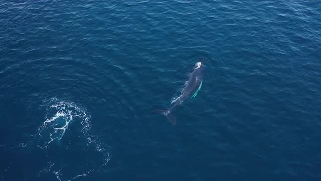 Part of a longer sequence of drobe footage following a single humpback whale in Northern Norway during winter