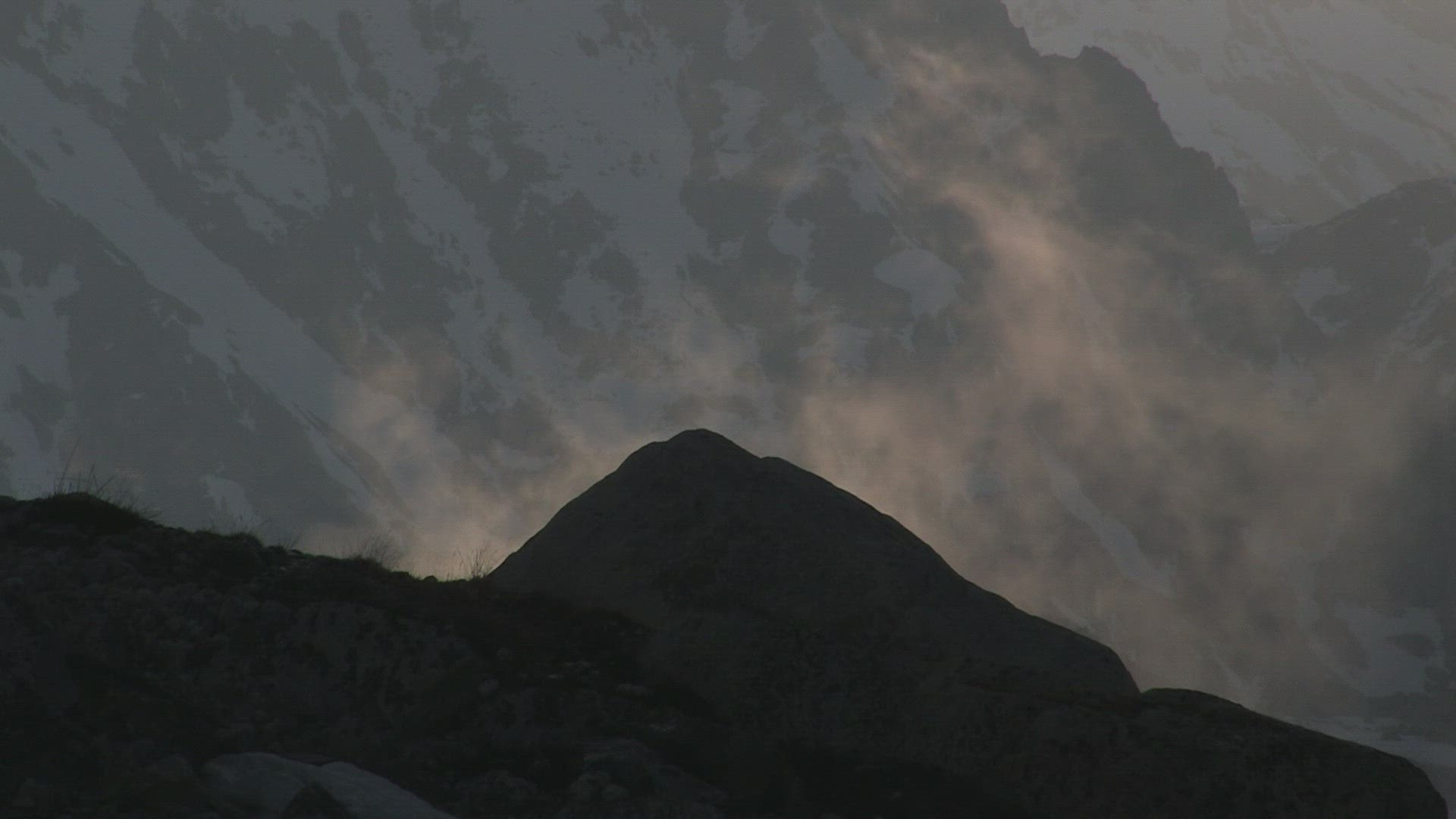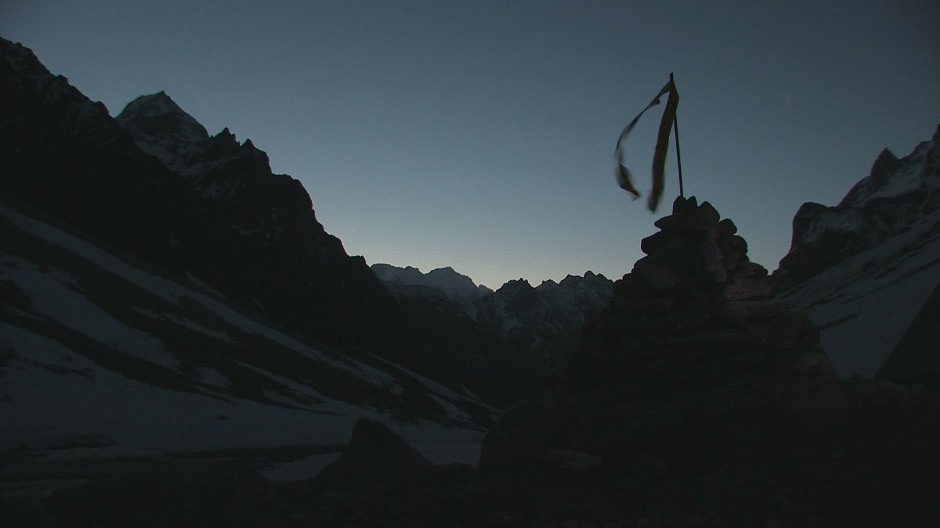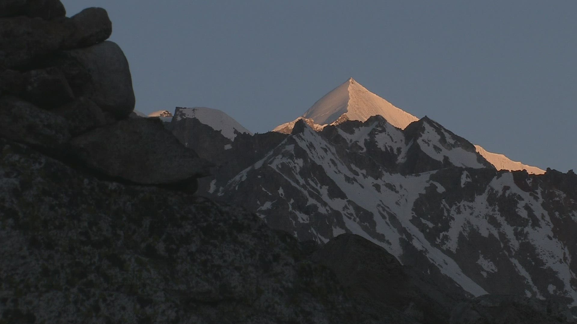 An evening falls over the snow clad Himalayas as seen from Hanle, Ladakh, India