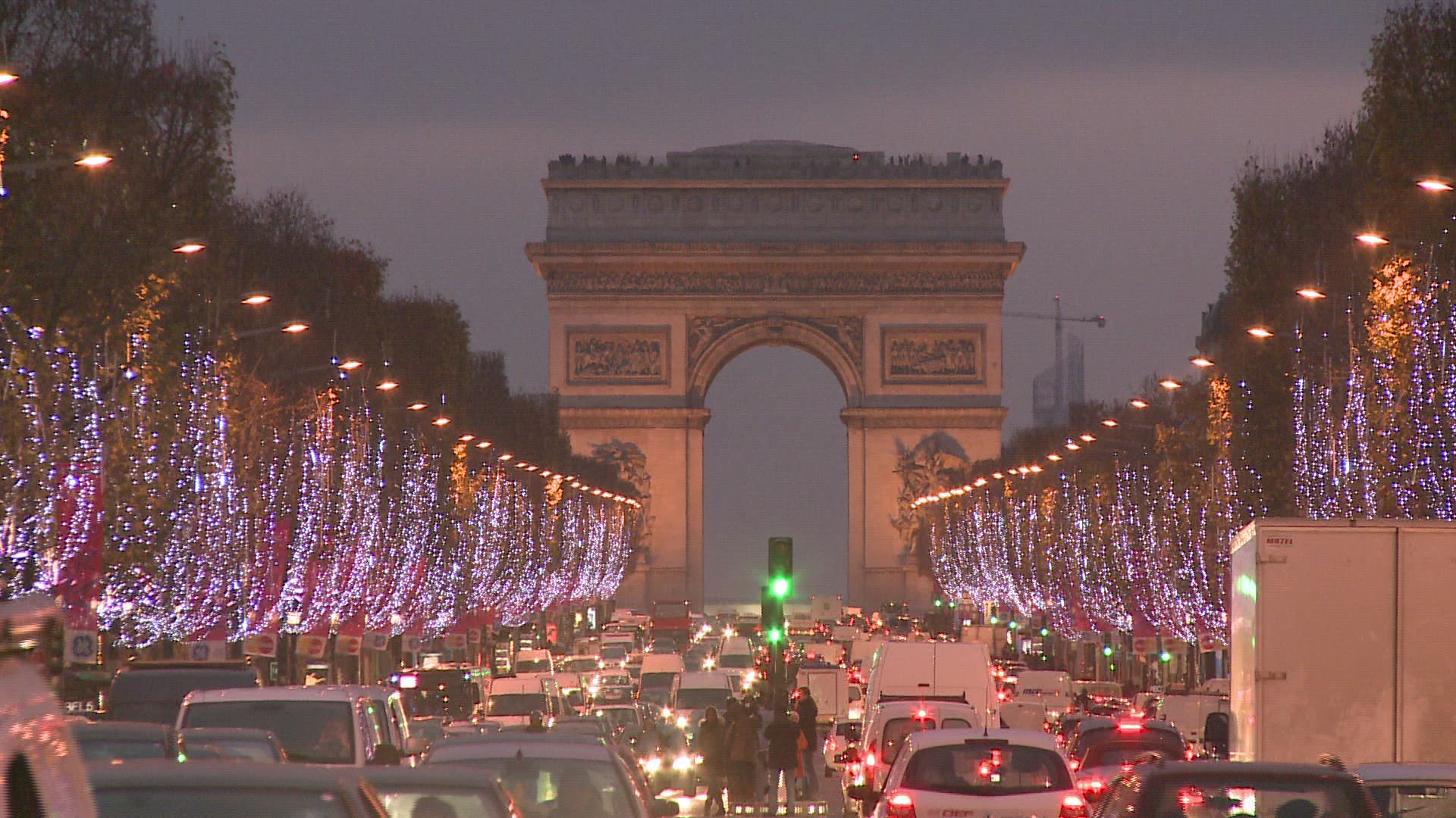 Time Lapse of people taking photos by a big christmas tree in Hong Kong