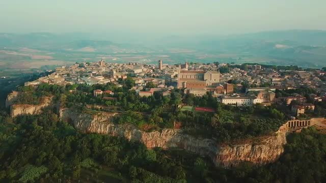 AERIAL View of old town on sunny day / Tuscany, Italy