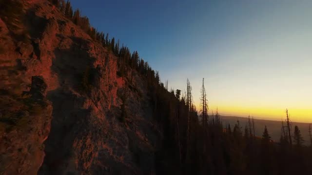 1129253 - FPV Fly by alpine lake cliffs at sunset
