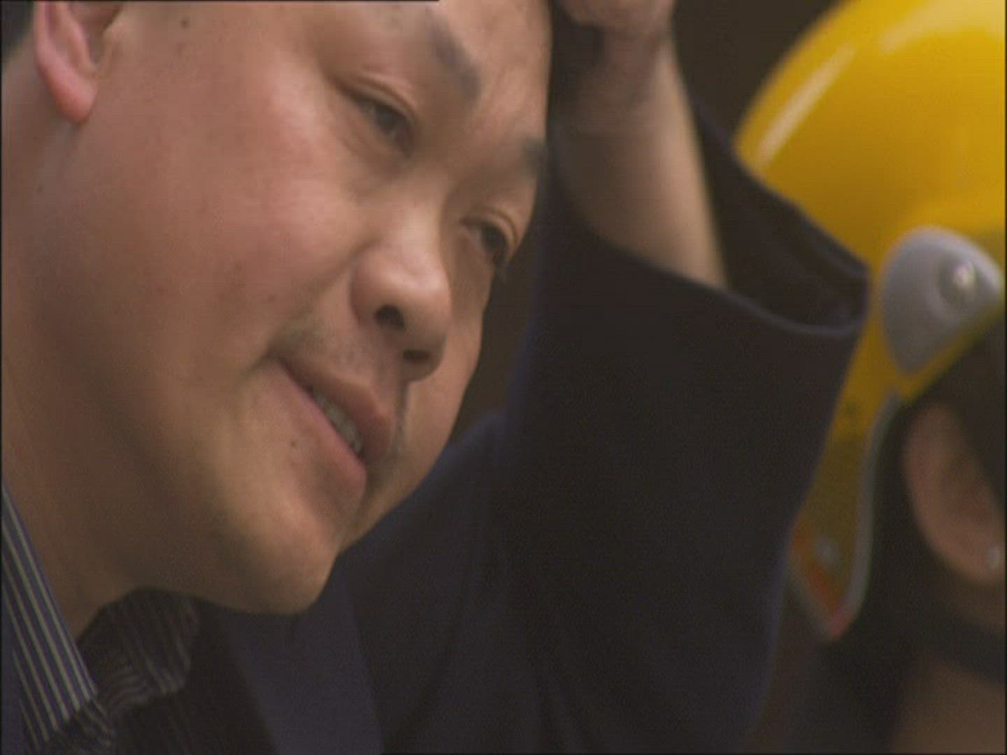 > Mature Japanese men riding bicycles in downtown Osaka, Japan