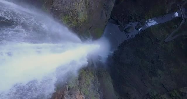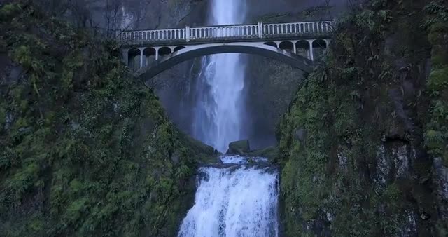 Waterfall Multnomah Falls 4K Aerial Drone - Start at top of waterfall then travel boom down with flo