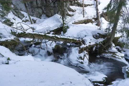 > Frozen stream with snow 8K