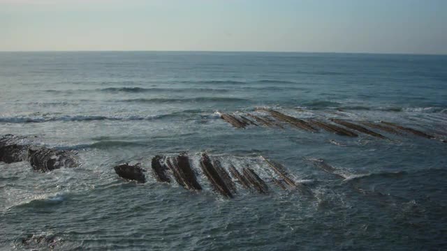 1101021 - Low camera moves through rocky facies at the sea in the Flysch