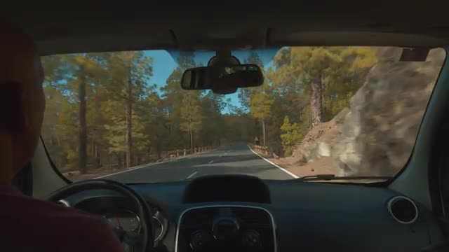 Car making its way through the mountains. Road trip to enjoy the nature beauty and see Mount Teide volcano on Tenerife, Canary Islands