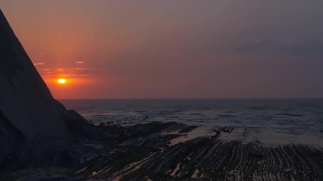 Zoom out sunset at Flysch