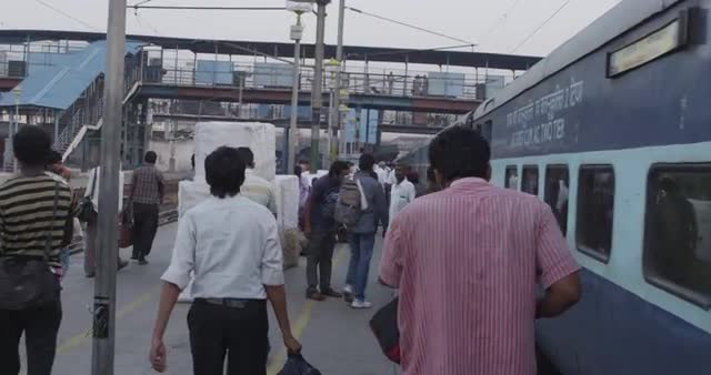 Train departure and station under construction, aerial view. Moscow, Russia