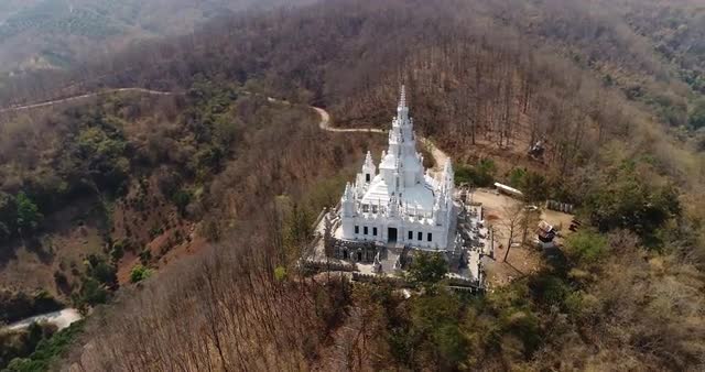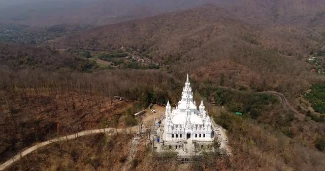 Aerial - crowd of excited young people celebrating Holi Festival in outdoor space with music performance