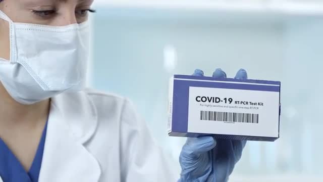 Close up view of Covid-19 test kit in medical lab.