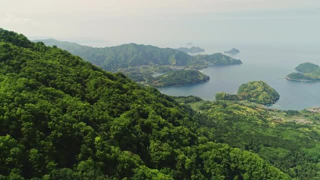 > Aerial footage of Mount Aobayama, Fukui Prefecture, Japan