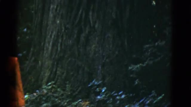 639180 - 1952: a woman in an orange outfit standing next to a massive tree SAN FRANCISCO, CALIFORNIA