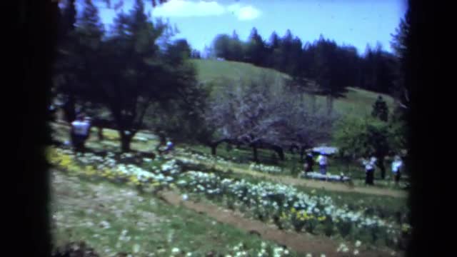678991 - 1971: a group of people are walking around in a garden on a sunny day MAINE