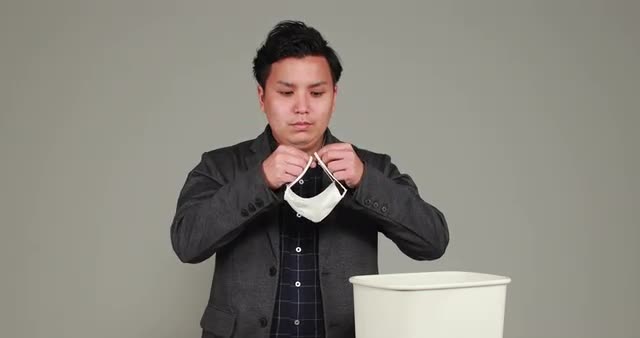 > Young Japanese man trashing medical mask