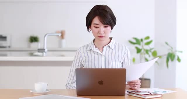 > Young Japanese woman working remotely from home