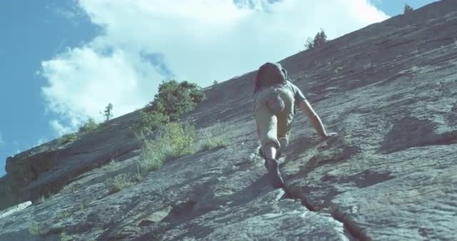 1102914 - Man Scrambling up a Rock Face