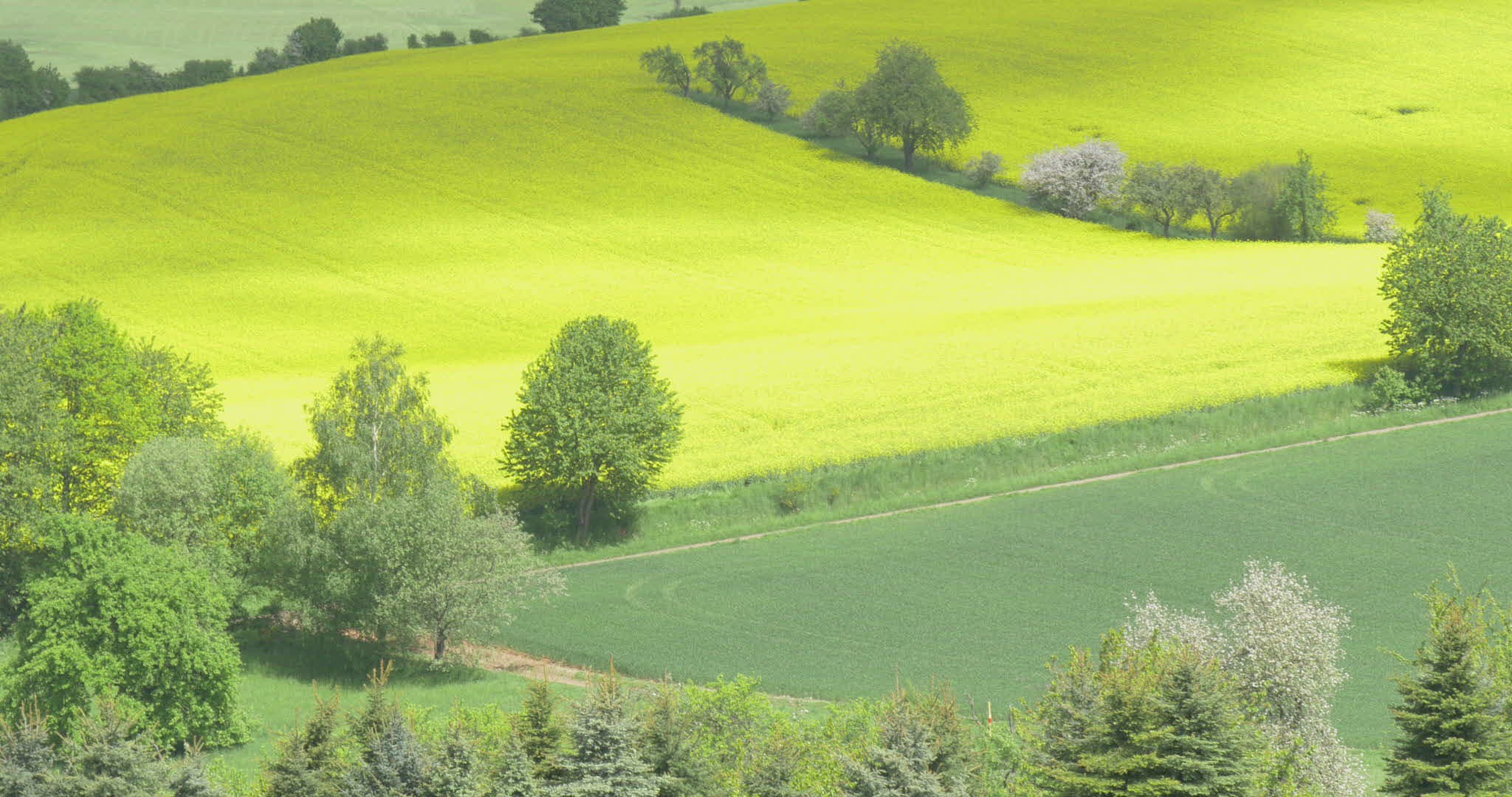 1103432 - Wide driving shot of tulip fields in Skagit Valley