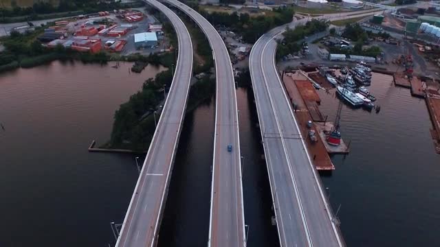 Aerial footage of a car driving on scenic coastal highway 101 on the Oregon Coast next to the Pacific Ocean on a beautiful summer afternoon.