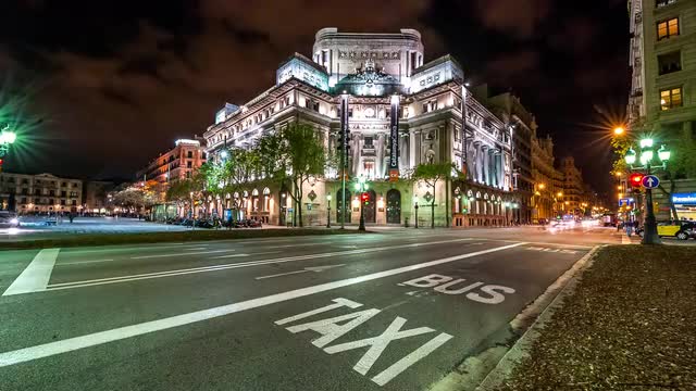 4K UHD Timelapse footage (250 frames) of traffic on a street Barcelona, Spain at night.