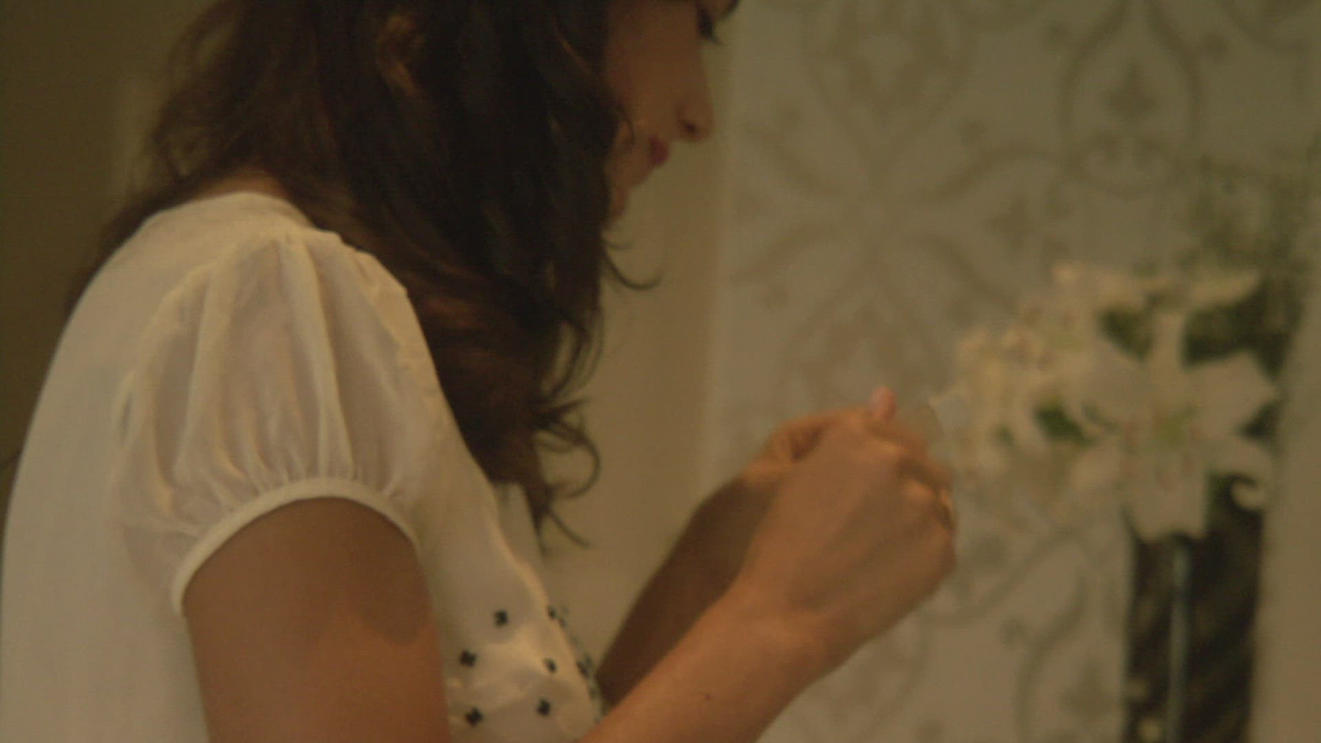Young woman in slowmo windy hair glamour in white sands dunes, New Mexico