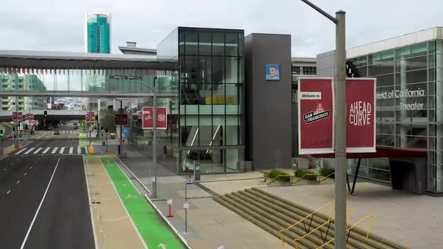> Empty streets of San Francisco near Moscone Center