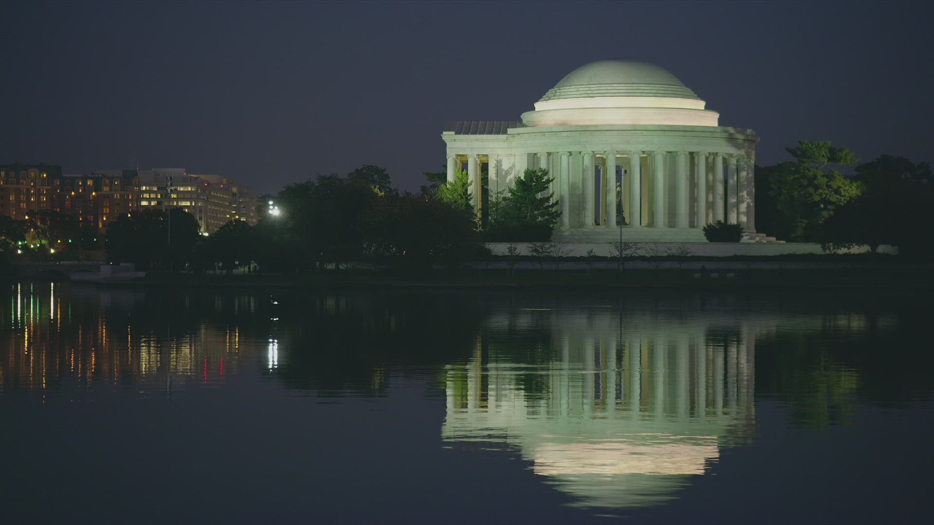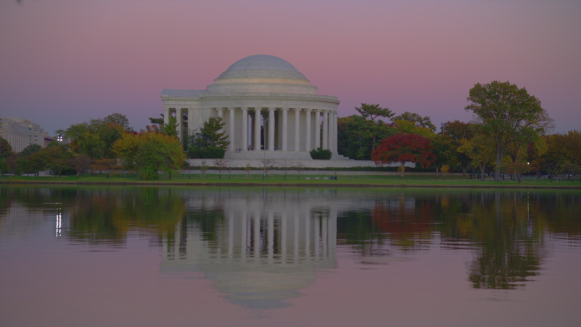 The Jefferson Memorial at sunrise in the winter in Washington, DC. Taken from across the Tidal Basin early In the morning.