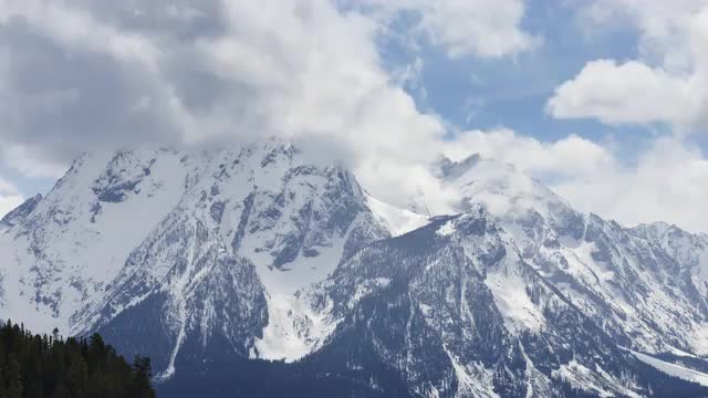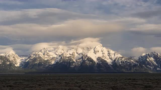 > Timelapse - Clouds form over Grand Teton Mountains over Plains