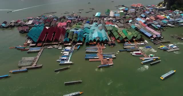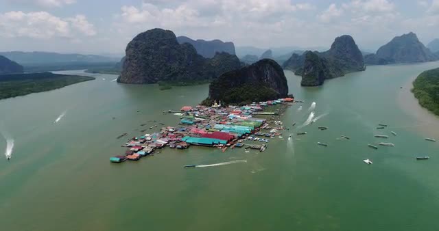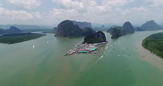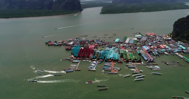 > Aerial view Ko Panyi a Muslim fishing village, Phang nga bay, Thailand