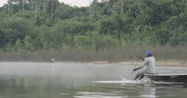 > People_Juarez paddles boat past egret_long rack