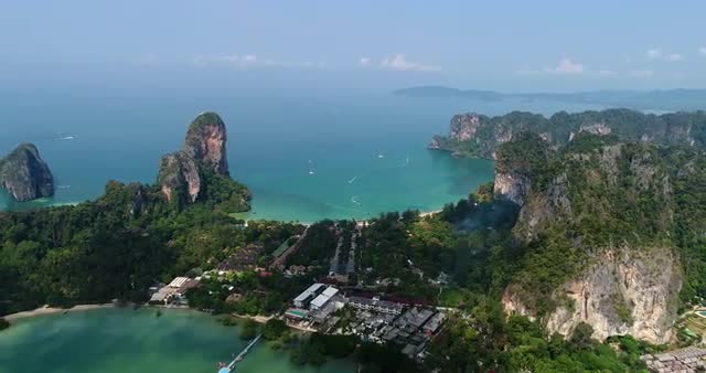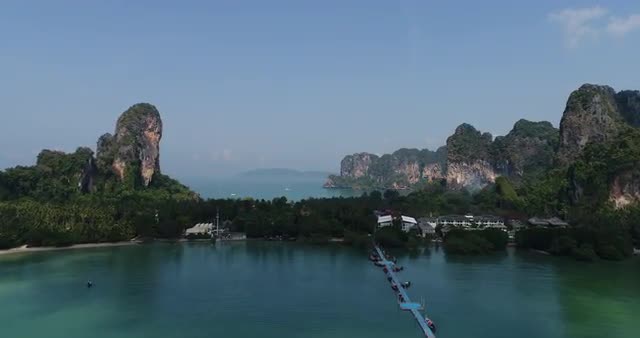 Aerial view of tourist boats visiting James Bond Island on the west coast of Thailand in the Phang Nga Bay, Phi Phi Island, Krabi, Asia, RED EPIC