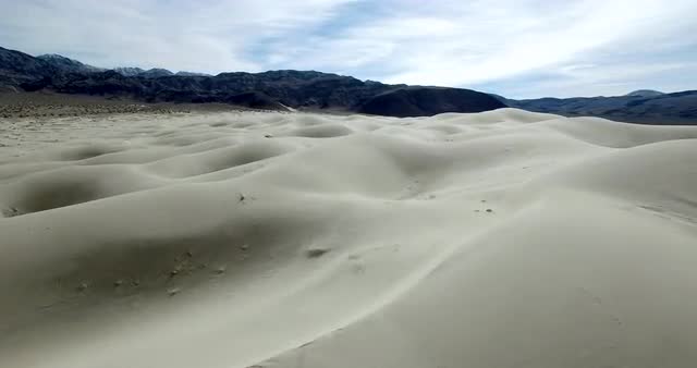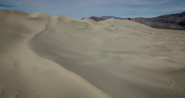 Wide aerial shot of sand dunes near Pacific Ocean