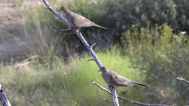Rufous-collared sparrow in natural behavior, feeding and removing the excrement of its chicks, nest in the middle of cacti. Atacama desert, Chile