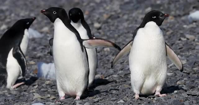MS Gentoo Penguin (Pygoscelis papua) chicks splashing in shallow water / Cuverville Island, Antarctica