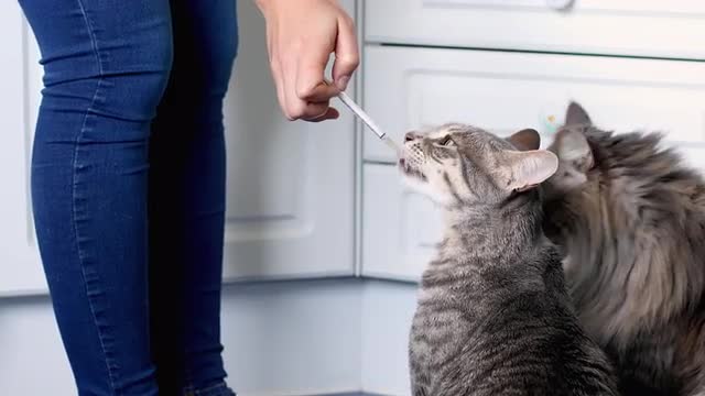 > Cat getting medicine