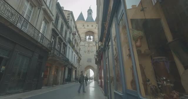 Close up static shot of the Avenue des Champs-Elysées where you can see the traffic moving in the foreground and the Arc de Triomphe at the end majestically. An image where you can see the large amount of traffic and movement that a city as big and beautiful as Paris has