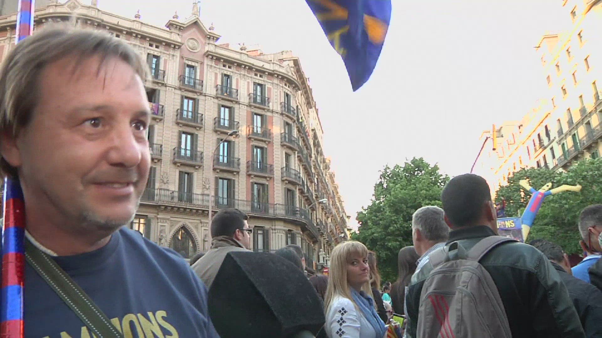 > Skateboarder passes by a amazing building on barcelona downtown filmed with a wide angle