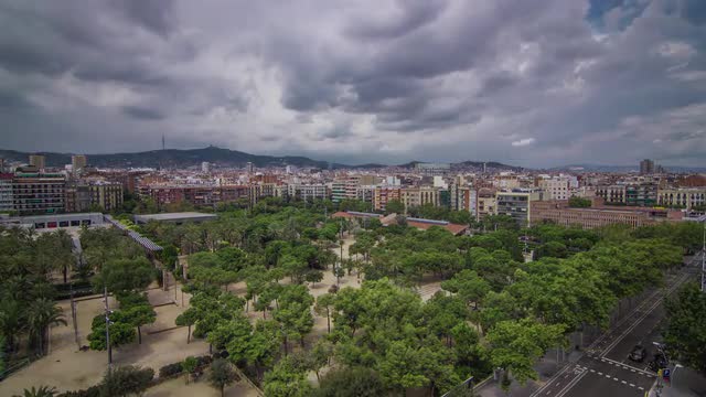 Skateboarder passes by a amazing building on barcelona downtown filmed with a wide angle