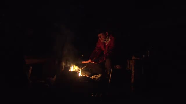 Man at campfire_rack focus