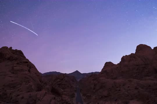 A stunning sunset timelapse of Mouse Tank Road in Valley of Fire State Park, Nevada. This canyon road is a popular destination to film desert roads and auto commercials. This state park is a public recreation and nature preservation area covering nearly 46,000 acres located 16 miles south of Overton, Nevada. The state park derives its name from red sandstone formations, the Aztec Sandstone, which formed from shifting sand dunes 150 million years ago.