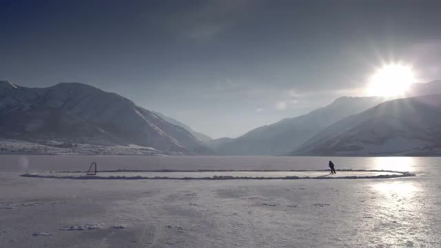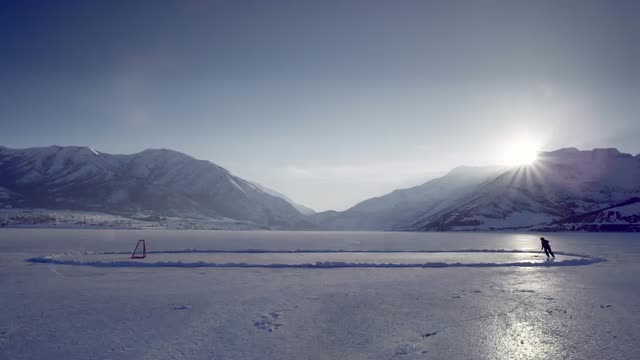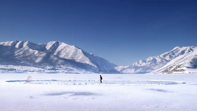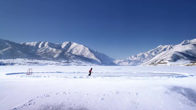 > Slow motion of couple running swimming in glacier cold Ice Lake, Colorado