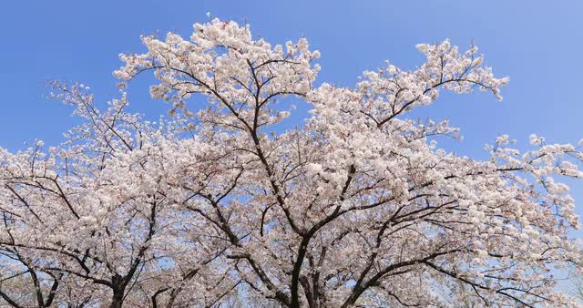 > Cherry blossoms in full bloom and blue sky, Tokyo, Japan